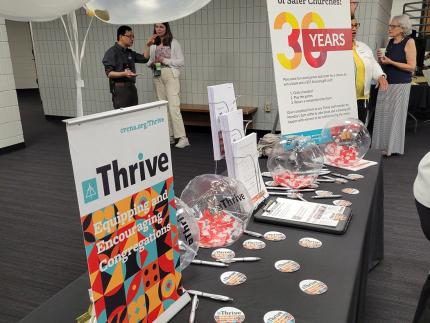 During Synod 2024, delegates, along with Thrive staff, had the opportunity to celebrate the 30th anniversary of abuse prevention with cake during the Monday-afternoon coffee break. Thrive staff member Julia Rathbun opened the break with prayer, thanking God for 30 years of ministry and saying, “While we celebrate a milestone of safe church ministry in the Christian Reformed Church today, we also lament the presence of abuse – not just in the world around us, but inside the walls of our churches. We grieve for those who have suffered. We weep with those whose stories are known, and also with those whose stories are unknown.”