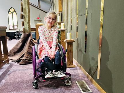 Though Kennedy had been on the stage to sing during worship services in the past, this occasion was different. As a seven-year-old who has spina bifida, she was delighted to be there with her friends because one of the church members, the owner of a construction company, had built a ramp allowing her to more easily access the stage in her wheelchair.