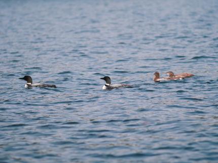 I recently spent my lunch hour beside Lake Ontario on a blustery day. In the pounding waves, two loons bobbed in the water. The current seemed unyielding. I wondered why they weren’t waiting out the wind onshore when three small heads emerged from beneath the female’s wings. Young chicks rode their mother’s back as she paddled hard against the waves. It was lunchtime for the little ones. To keep their new swimmers safe, the father loon dove off to fish. He paddled back and forth, emerging from the deep with his catch and returning to his mate to drop morsels into utterly dependent mouths nestled between her wings. After more than an hour, their paddling slowed as fatigue set in and bellies grew fuller.