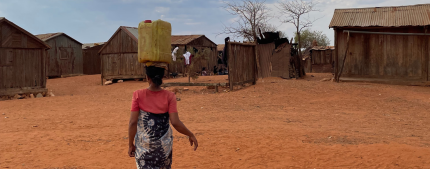 Photo provided by the author: A woman carries a jerry can of water from the town to her village, about a 7-km walk