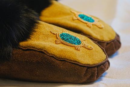 As Norma walked away, I looked down at the rubber-soled boots I was wearing, and I thought about the last time I really looked down to see the steps I was taking. I thought about the many times I had walked right through puddles to get to my car a second quicker or the times I kicked stones out of the way of my path to try to get a more solid footing or the times I walked on someone’s lawn instead of using the sidewalk just because I could in my solid, synthetic-fabric footwear. As I continued walking through the cultural center, these thoughts filled my mind. I was left wondering…what if everyone wore moccasins? What would our world look like if we all wore moccasins?