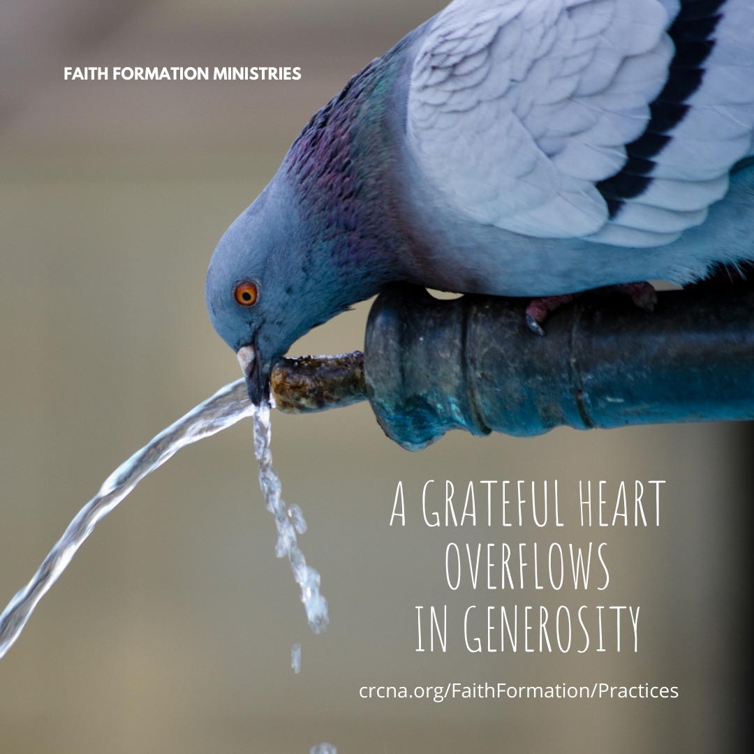 As a faith practice, generosity involves freely sharing with others the many gifts God has given us. A spirit of generosity arises from gratitude. As we imitate God’s own generous nature, our generosity overflows to bless the people around us.
