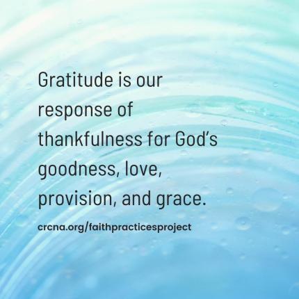 As a faith practice, gratitude is our response of thankfulness for God’s goodness, love, provision, and grace. It is the undercurrent of all other faith practices—the well out of which they flow.