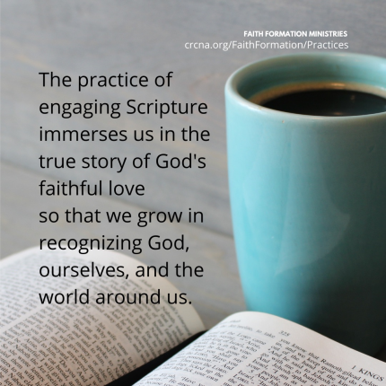 As a faith practice, engaging Scripture immerses us in the true story of God's faithful love so that we become more like Jesus as we grow in recognizing God, ourselves, and the world around us.