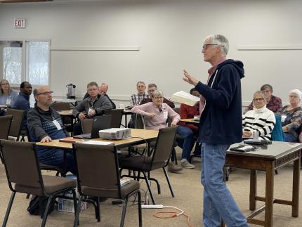 Photo: Syd Hielema discussing growing pains at the retreat.