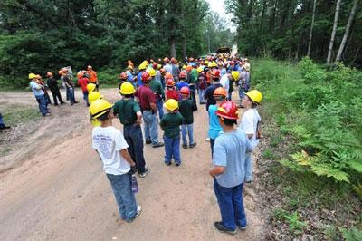 The campers and counselors were on their way to school buses that would take them to perform service work during the afternoon on a nearby, national hiking trial.