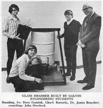 It was Bosscher who in 1972 urged his students to design the prototype glass smasher to be used for community projects. Just the previous year, Bosscher had organized a glass drive to raise funds for a local charity, but the manual glass smashing limited volume and profitability.