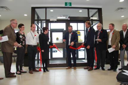 Remarks and greetings were brought by other representatives, and a formal ribbon cutting marked the official reopening of the office. Rev. Chris DeWinter, representing the Canada Corporation of the CRCNA as well as local church leaders, cut the ribbon. Next, all those present participated in a short litany of dedication.