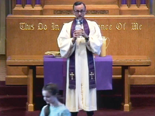 Holding up a bottle of hand sanitizer, he said it is very important right now to have clean hands. He squeezed some of the liquid gel on his hands and reminded children watching the livestream of the morning service that they needed to wash their hands for at least 20 seconds — about as long as they sing the doxology that comes after the offering in their usual church services.