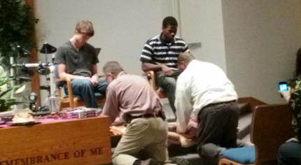 On Maundy Thursday, the day before Good Friday, pastor Jim Halstead and Bishop Reginald Brackmon got down on their knees in front of the church and washed the feet of their sons.