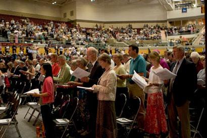 Rev. Jerry Dykstra, executive director of the Christian Reformed Church, offered the intercessory prayer on Sunday afternoon before some 3,000 people attending "The Unity of the Spirit in the Bonds of Peace" worship service at Calvin College.