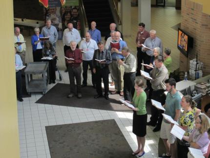 An impromptu hymn sing, including CRC staff and members of the CRC Board of Trustees, then broke out. The Board of Trustees is meeting through Friday in the building.