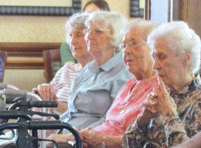 Sharon Nelson, a volunteer at one of the communities, River Oaks Garden, said she watched with satisfaction and happiness as several dozen senior citizens sang along to the 1914 James C. Moore hymn, "Where We'll Never Grow Old."