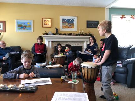 During the service at Wilk’s home, one of the children lit the Advent candle for that week and recited a prayer. The group sang some familiar Christmas songs, and then Karen led a time of teaching from Luke 2:1-7, in which Joseph and Mary travel to Bethlehem at the time of a census. While there, Mary gives birth to Jesus and wraps him in cloths and places him in a manger because “there was no guest room available for them.”