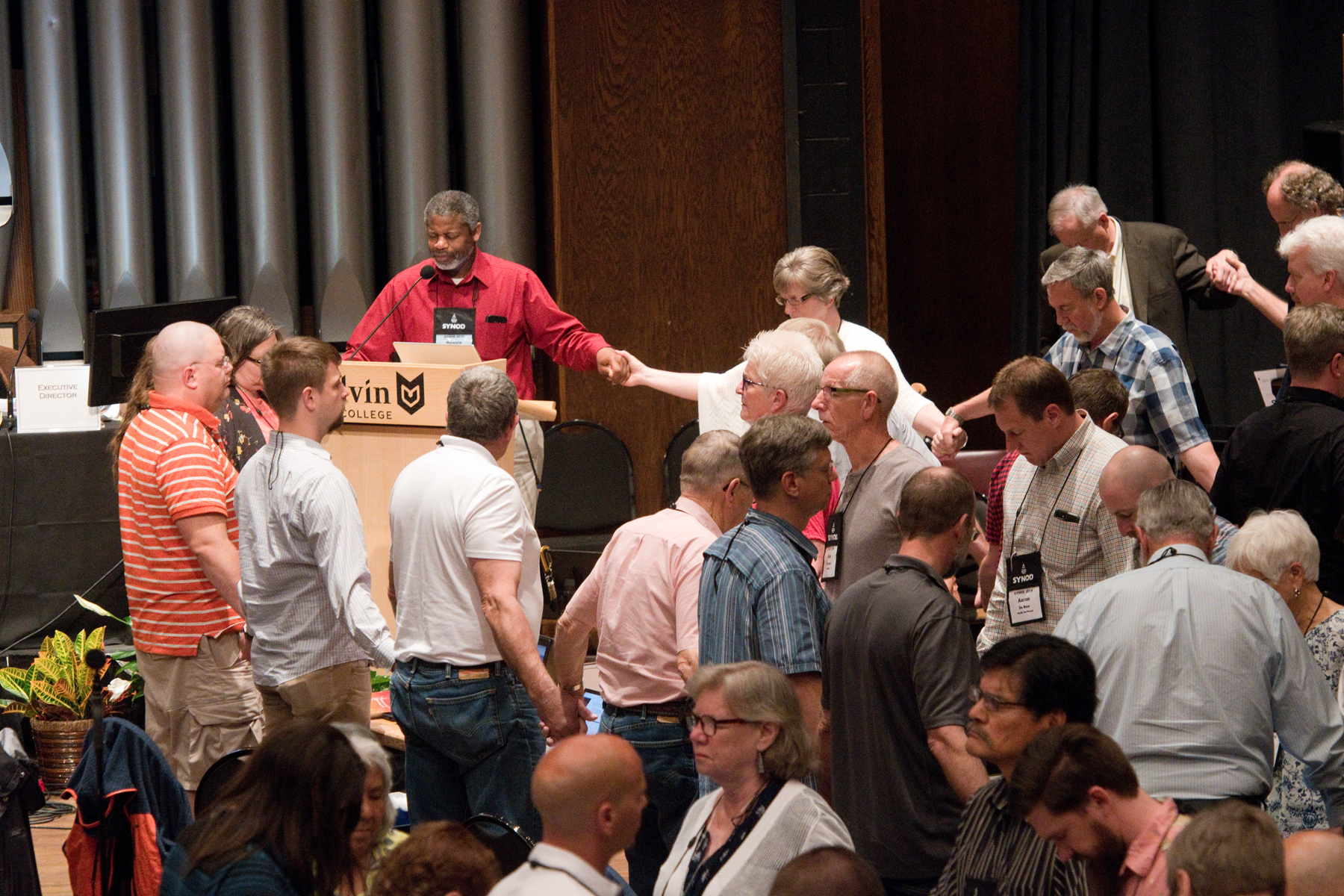Coming back to the podium, Smith had the delegates join hands. He said, “This is family. In this place we are on the same level.” He led a prayer of lament and hope. Synod concluded the discussion of Kinism singing a new song based on 1 John 4:20.