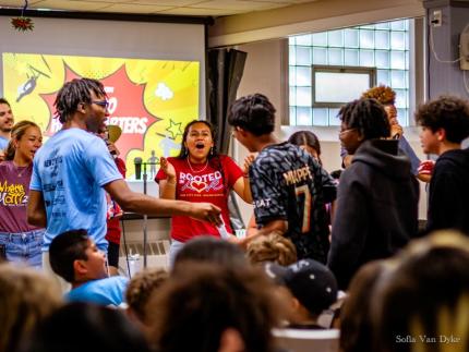 When the music died down, Rev. Joel Van Dyke, one of Lee Street’s pastors, appeared on stage. He surveyed the kids in the seats and asked what biblical superheroes had they been learning about. A few answers came: King David and Jonathan, David’s best friend; Samuel, who anointed Israel’s first kings; and Abigail, a wise peacemaker who married David.