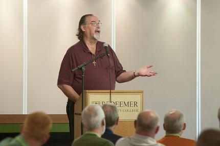 A synod luncheon honoring retirees was highlighted by delegate Rod Hugen, who recounted his journey from Classis Arizona to Ancaster, Ontario, in rhyming verse (watch video recording).