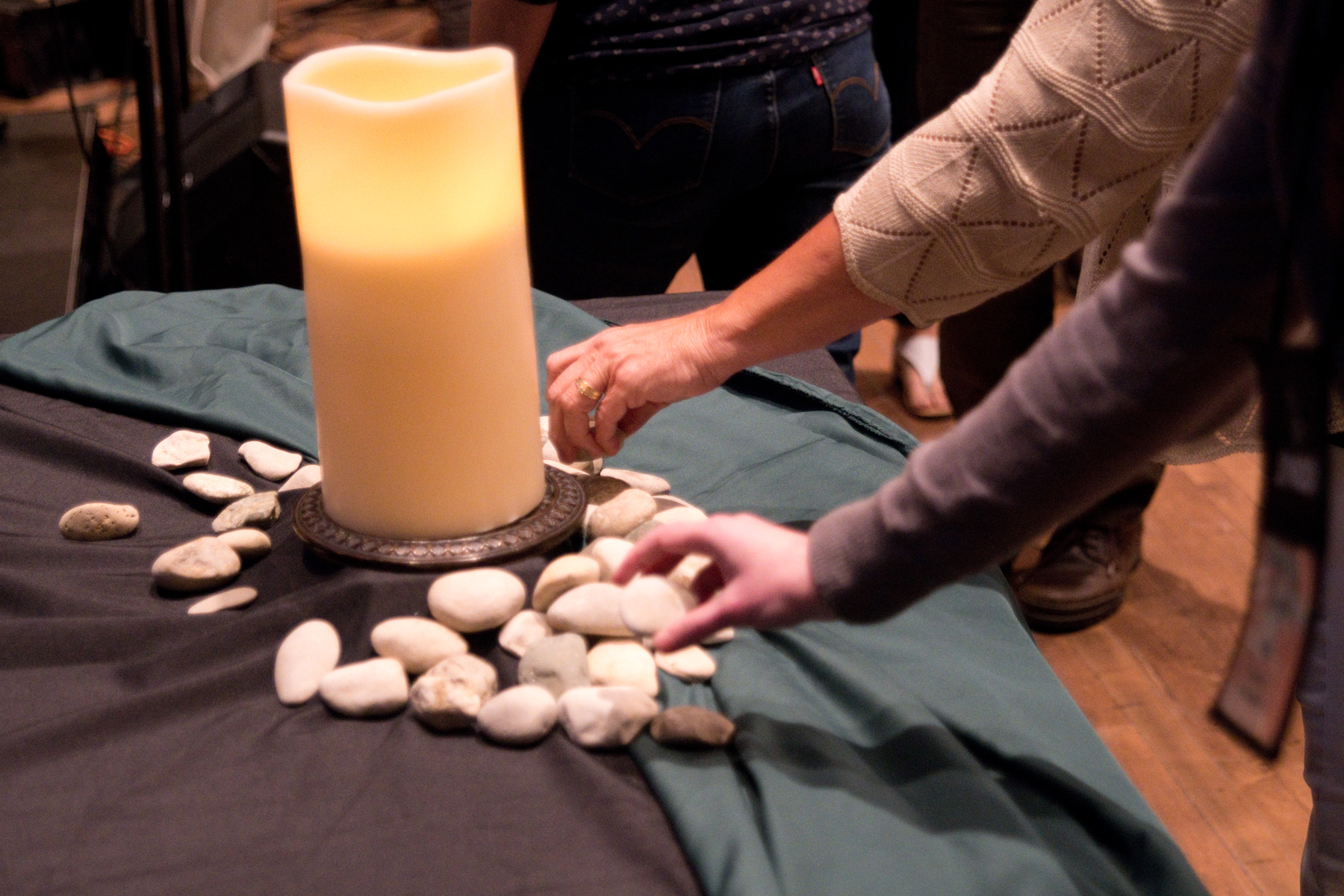 Hearing and reading from a litany written by Sharon Fennema, delegates and gathered visitors lamented together. Those present were also welcomed to bear witness to stories of abuse they themselves carry or stories they know of by taking and placing stones in a pile.