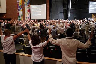 Synod 2012 ended this afternoon with delegates standing shoulder-to-shoulder in worship, after a week of discussion, deliberation, debate and sometimes disagreement.