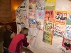 CRWRC and OSJ recently decided to become part of the tent project. The first appearance of the tent occurred during the International Faith and Development Conference that took place at Calvin College in early February. College students painted some of the first images on the small canvas tent. CRC employees in the Grand Rapids office will add signs and symbols to the tent this week.