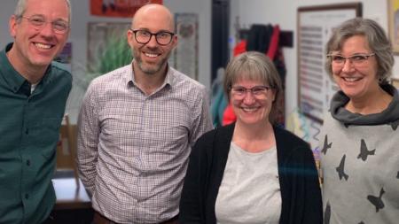 • Members from Hebron CRC, Whitby, Ont. (l-r: Nancy McGee, Laura Willet, Barb Willet, and Mary Hosmar) attended the first Generation Spark binational gathering in October 2022.